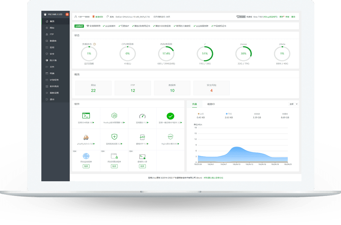 通用安装脚本(企业版为付费版本,绑账号可14天试用,期满则需续费企业版。且安装后无法切换免费版/专业版): if [ -f /usr/bin/curl ];then curl -sSO https://download.bt.cn/install/install_ltd.sh;else wget -O install_ltd.sh https://download.bt.cn/install/install_ltd.sh;fi;bash install_ltd.sh ed8484bec一键复制