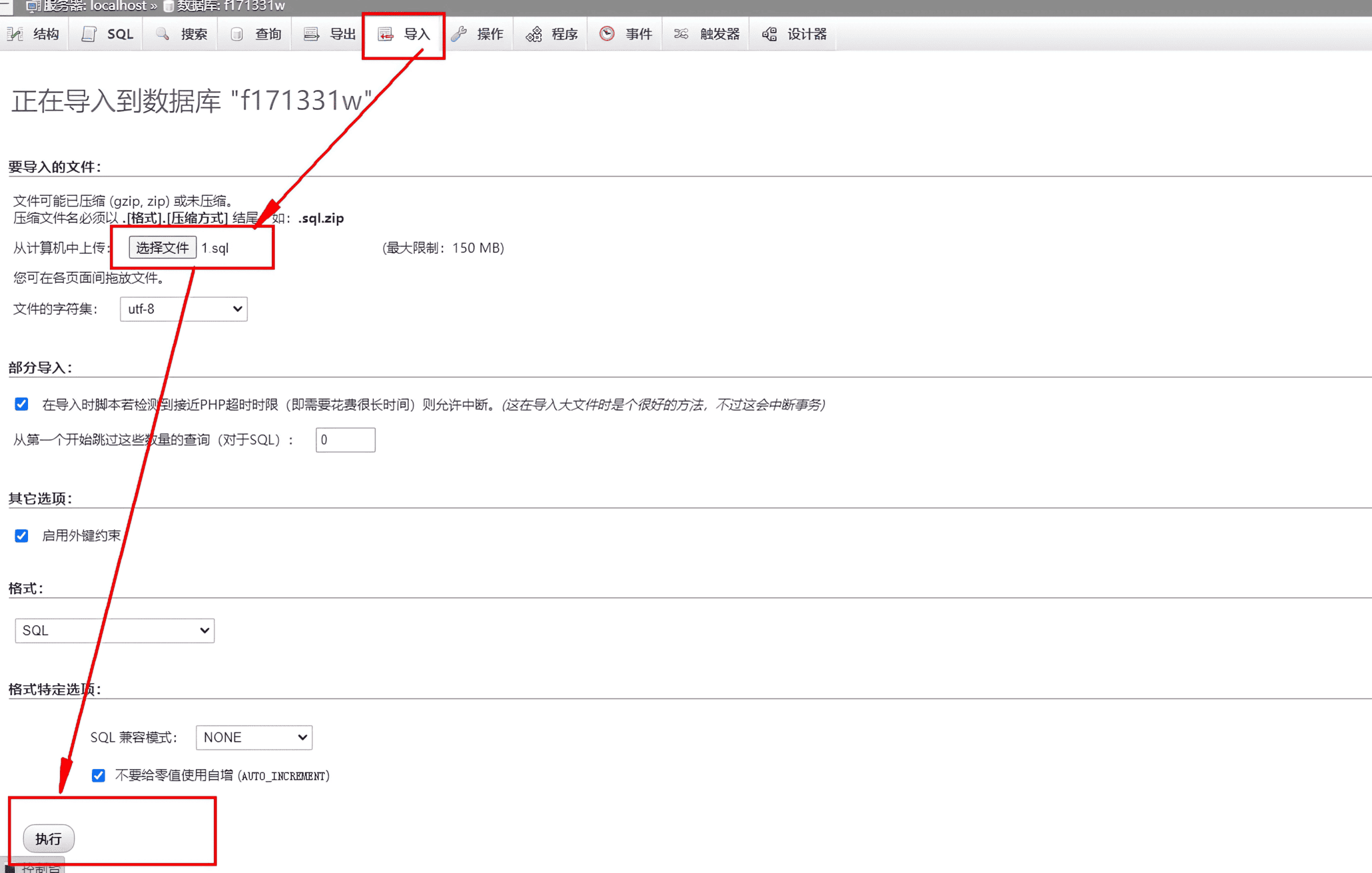 第二种:进入SQL数据库面板内进行导入。