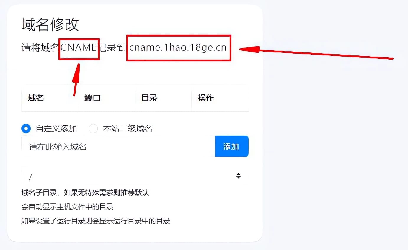 如提供的是CNAME类型,也就是别名,复制别名:cname.1hao.18ge.cn